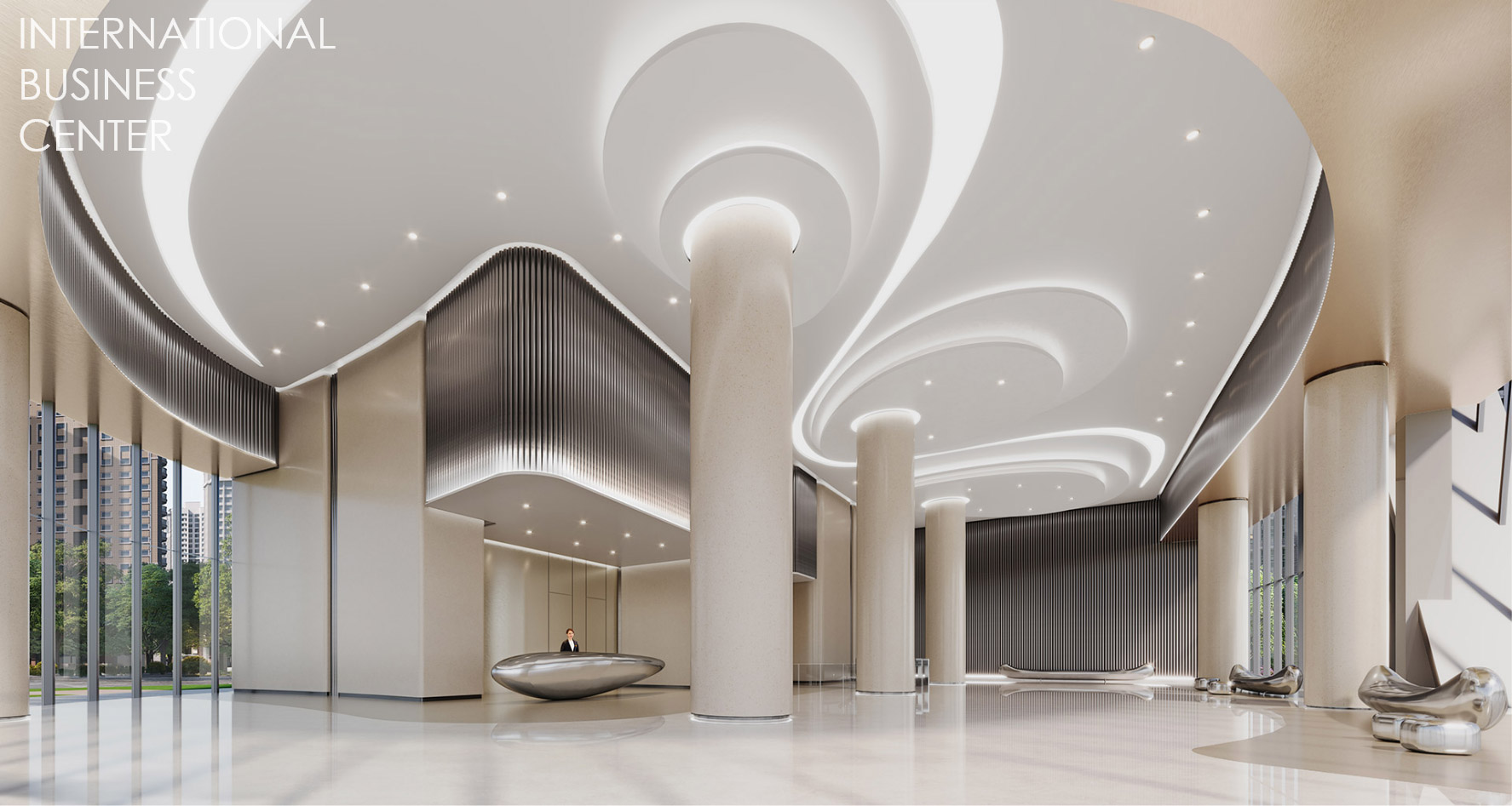 1樓門廳與管委會空間 / 3D透視輔以電腦合成情境圖,現場環境依實際為主,建設公司保有設計修改權,最終依竣工為準
