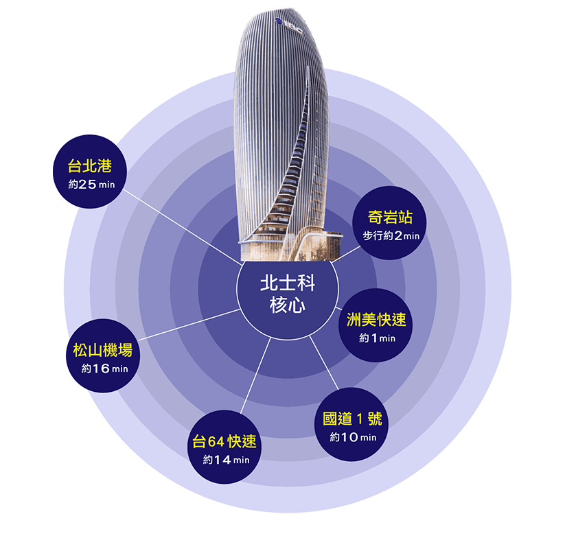 基地定址雙科園核心,左擁關渡科學園區;右鄰北士科特區,坐擁交通聯運、