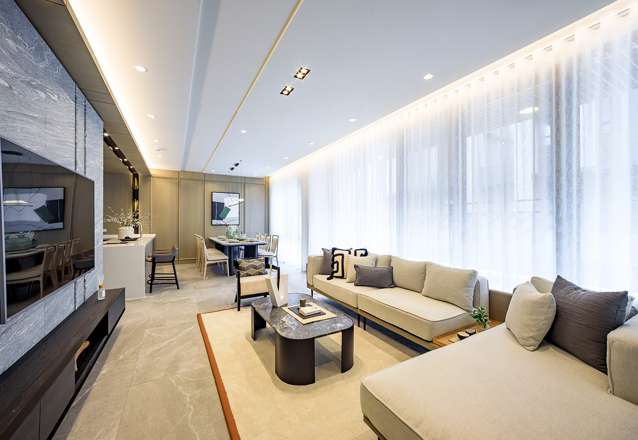打造錯層露台庭園,一方蒔花弄草城市田園,當風與陽光穿透「風廊」,便是最幸福居家時光。