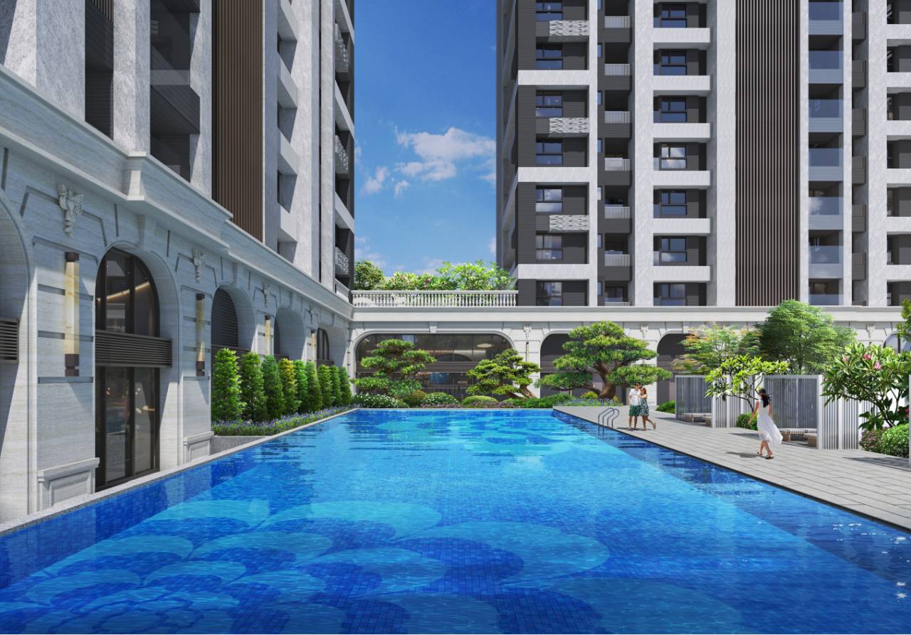 白天暢泳於藍天綠意之間,夜晚池畔點燈