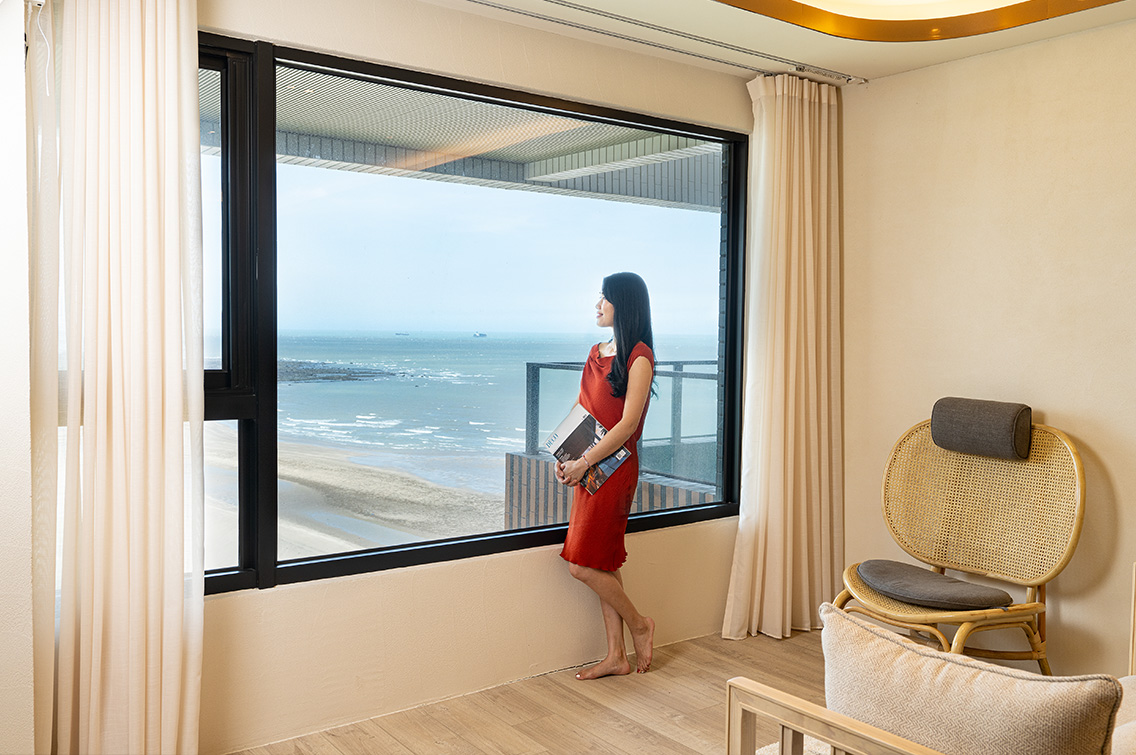 豔陽下,風平浪靜的大海,充滿療癒能量