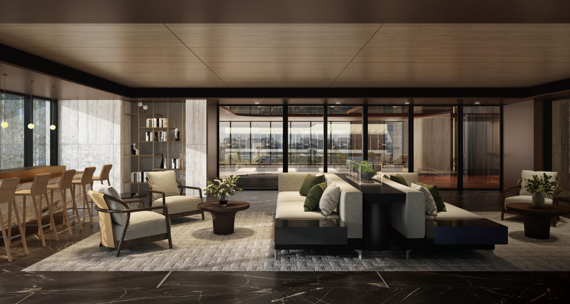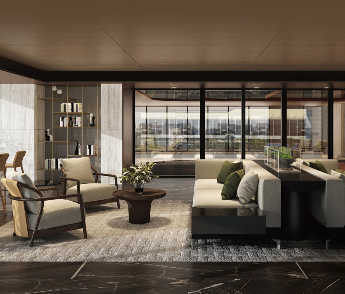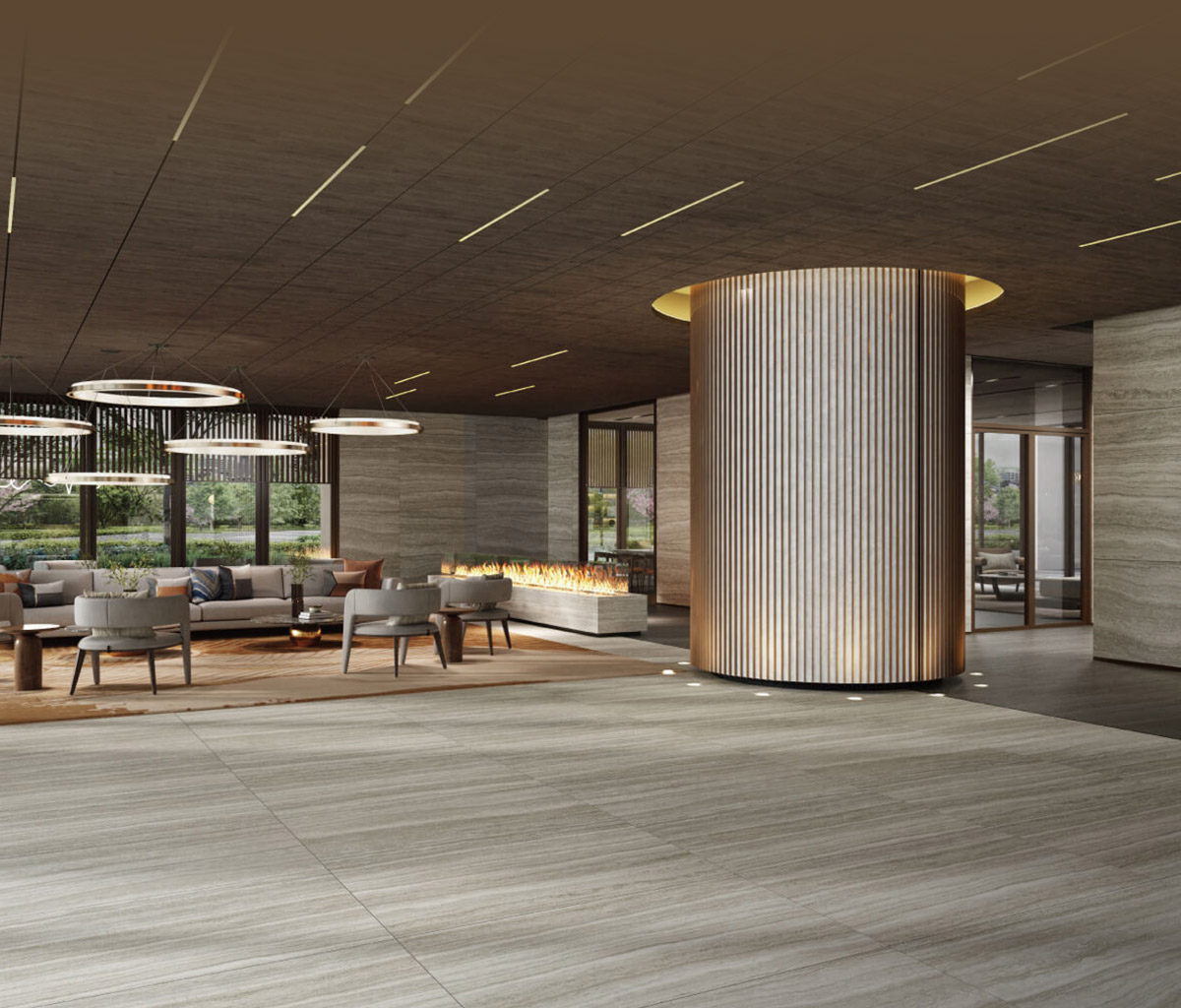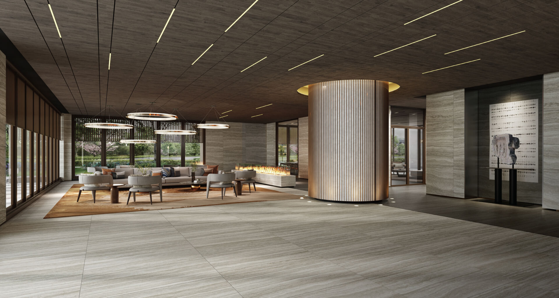 社區梯廳、管委會空間,配有大面窗景,