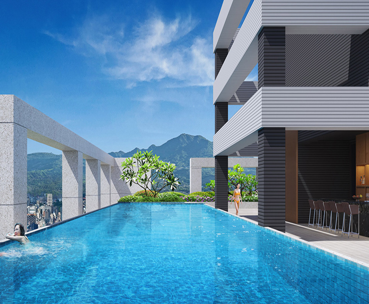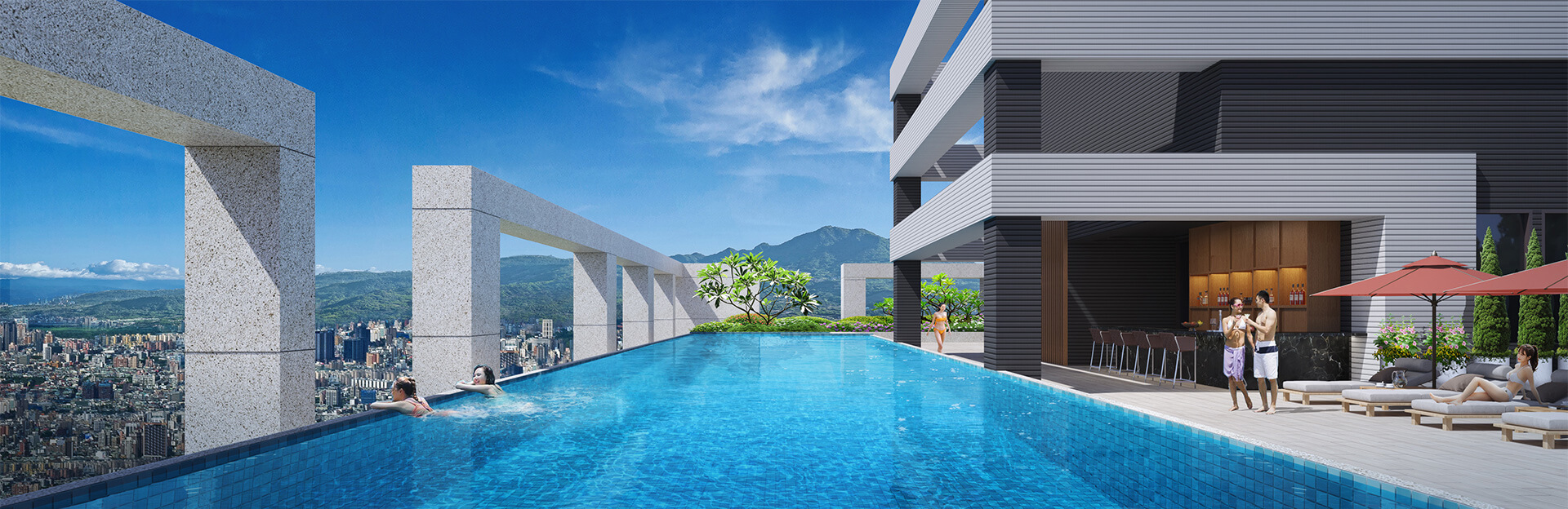 取自高級酒店元素,打造空中泳池場域,