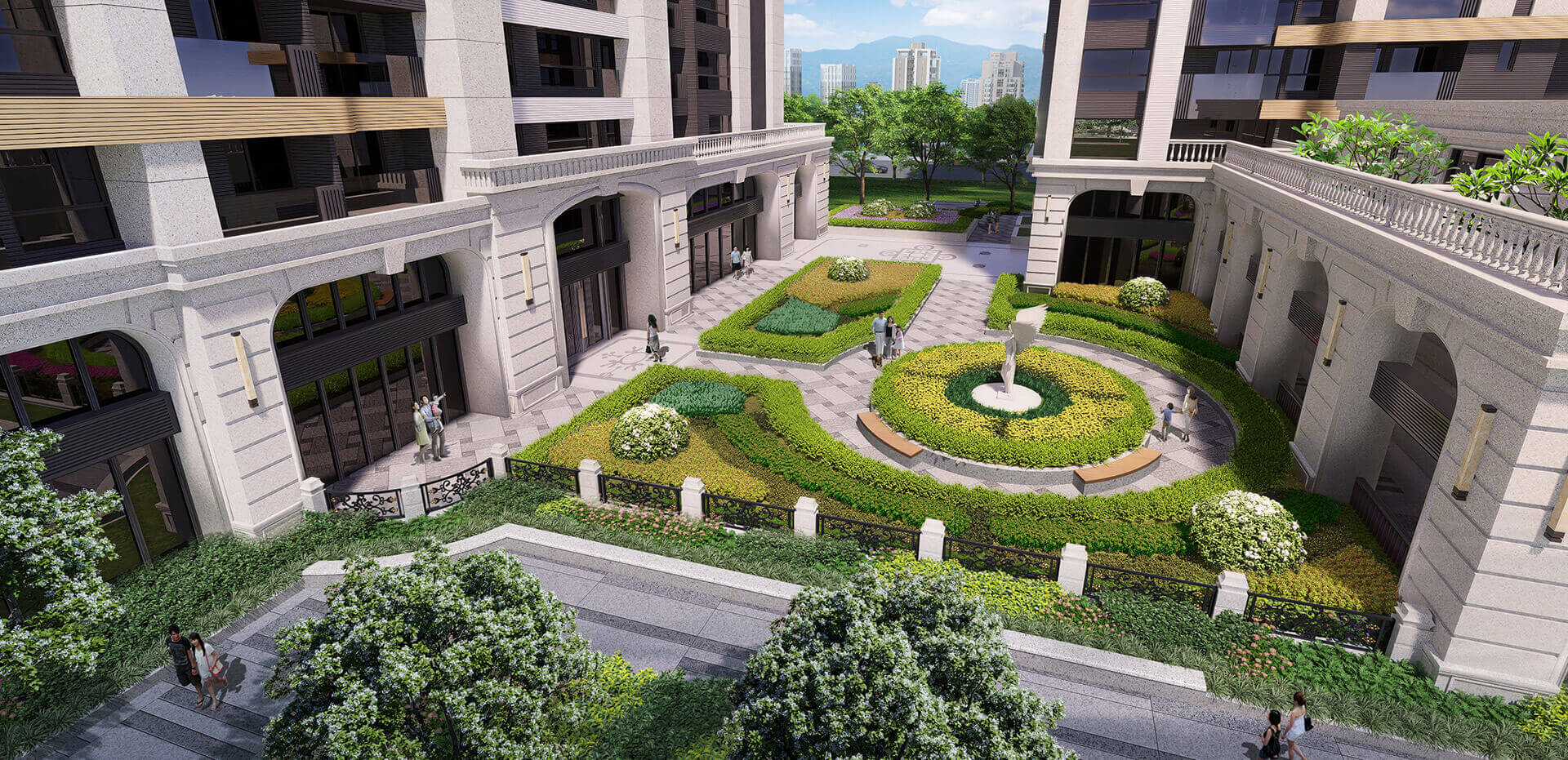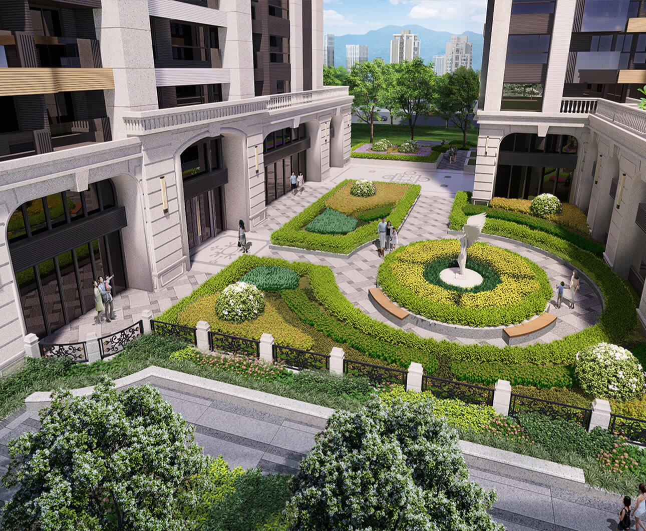 1樓皇家景觀庭園,歐式幾何設計,呈現對稱的均衡之美。