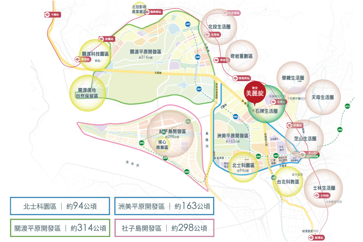 大北區科園廊帶總開發近900公頃,超越信義計畫區5倍,尤以北投士林科技園區為重,匯集AI科技、智慧醫療、數位技術,引領台北未來20年產業發展