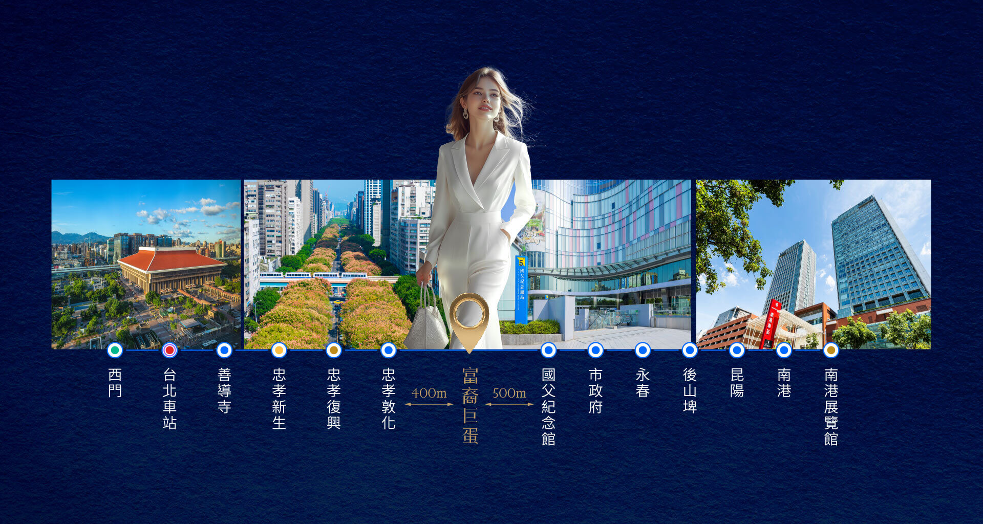 台北大巨蛋、國父紀念館、信義百貨區、敦化金融圈…