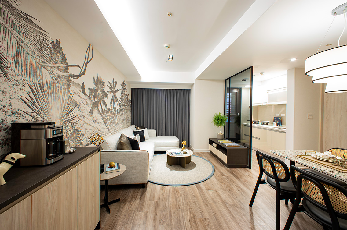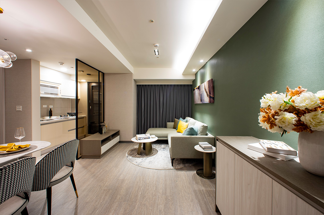 1房1廳具獨立衛浴和廚房、陽台的極簡房型格局,妥善的空間運用和家具擺飾搭配的典雅風格,打造出專屬於自己的小坪數精緻套房,回到家就是慵懶自在的開始。