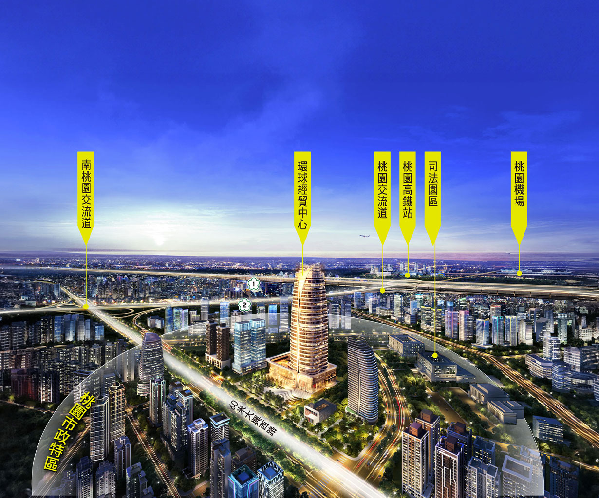 本案位於桃園新核心,高含金量國際門戶,區域內包含國家行政機關、高級住宅、交通利多、捷運等