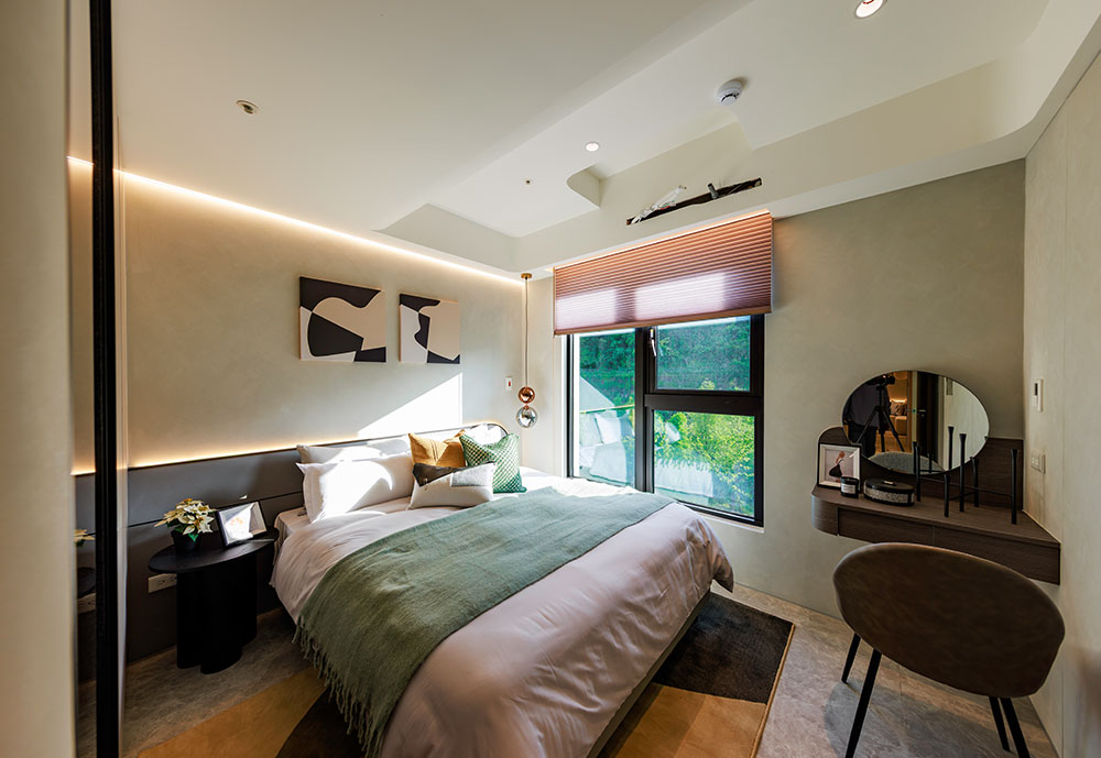 • 寬裕主臥可三面下床,擁抱窗外綠意