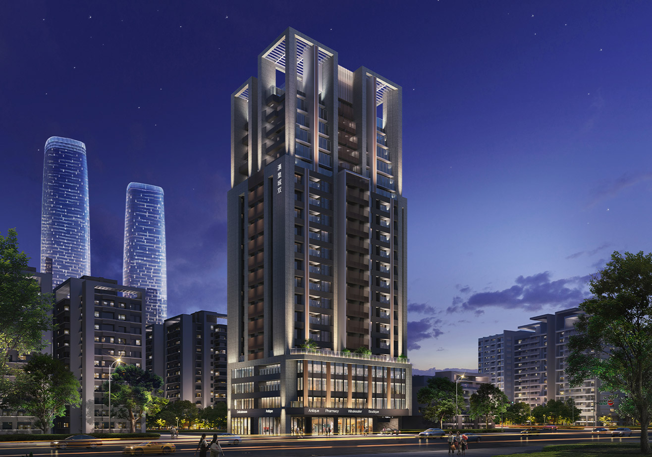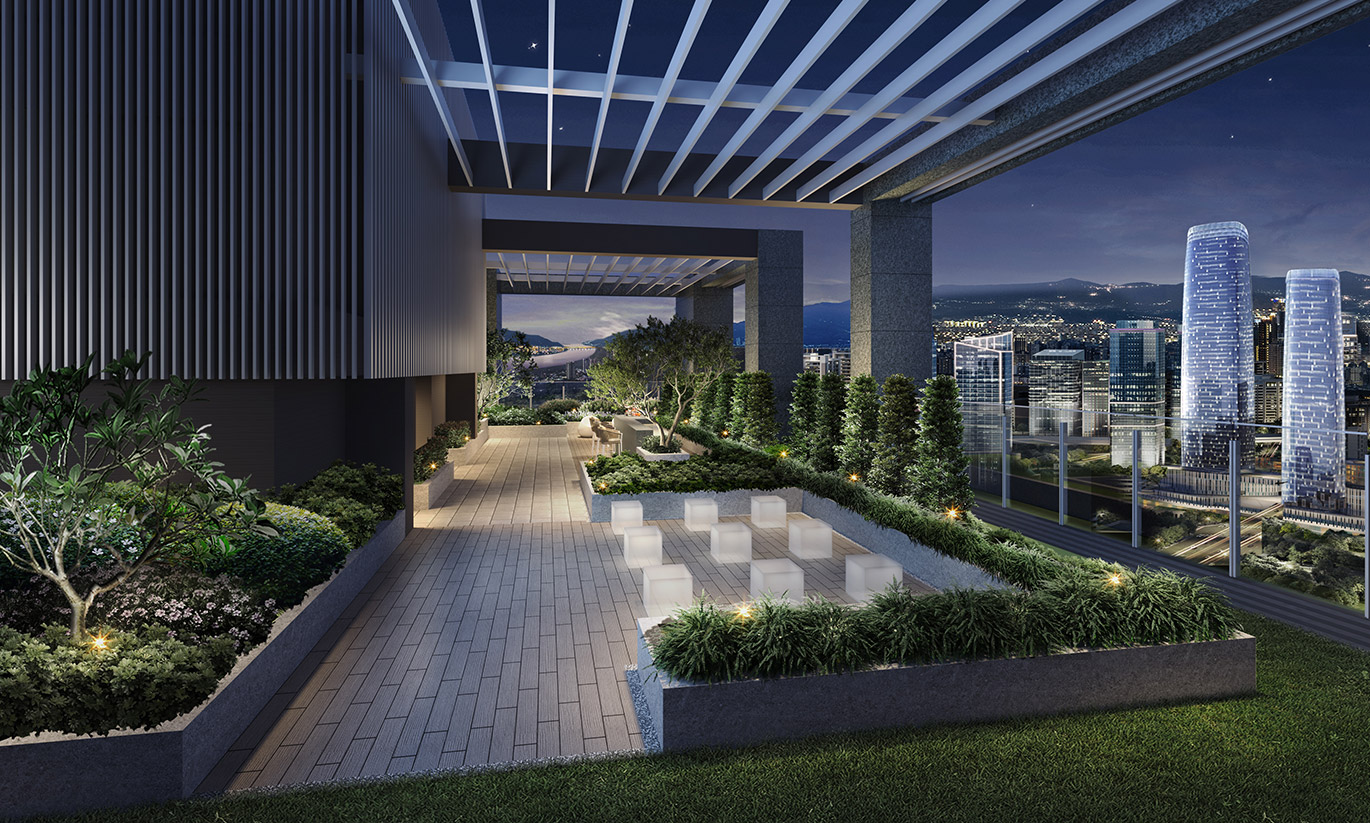 景觀設計師許富居從花園中汲取靈感,在一樓庭院提出「以窗為框,以景為畫」的設計理念,展現濃厚的日式侘寂美學意象。空中花園則以城市天際線為背景,呈現出一幅美麗的都市景觀。