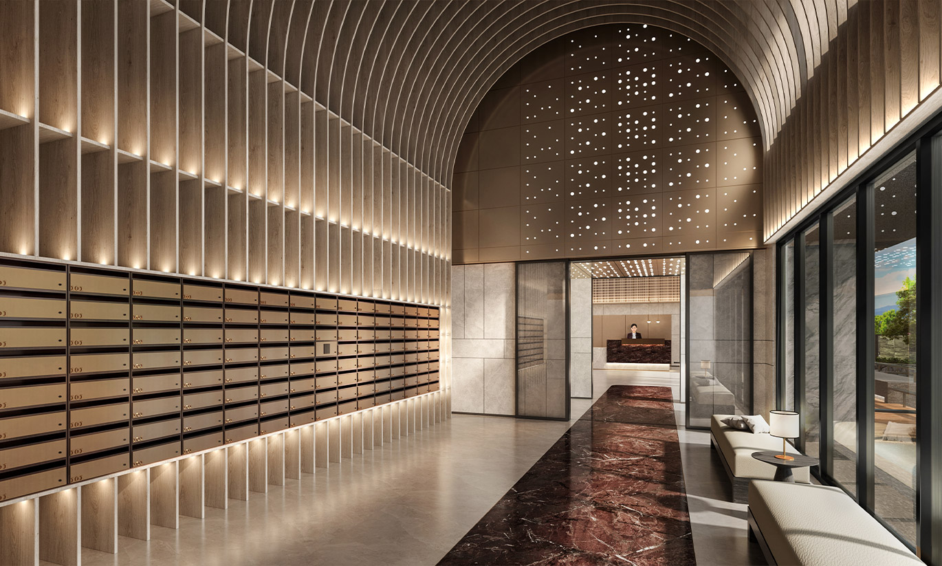 從前廊開始,仿若步入京都的高隱私小徑,接待大廳人文質感,提供專業物管服務,演繹新一代日系飯店氛圍。