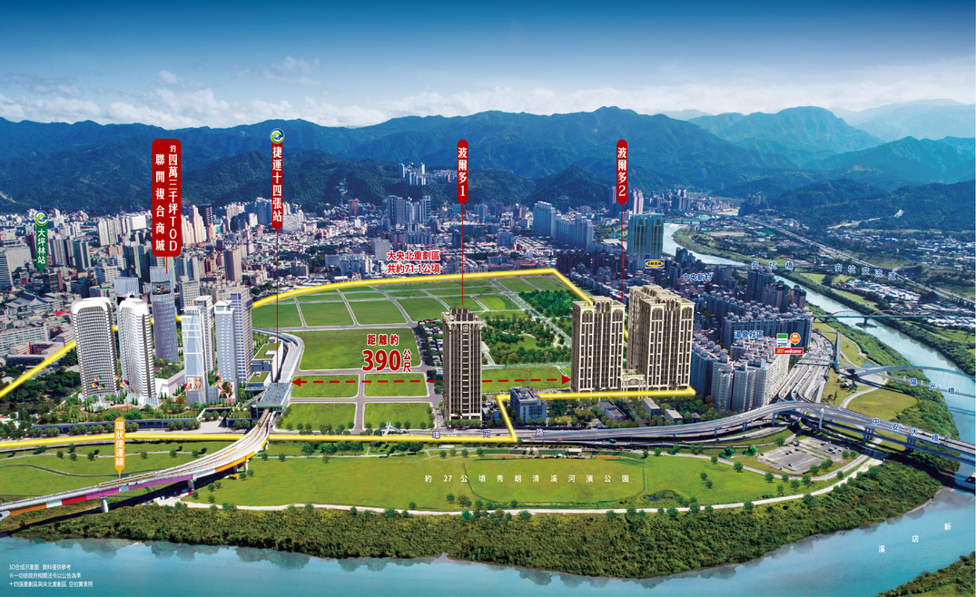 ▲央北地王「波爾多Ⅱ樂菲莊園」距離捷運環狀線十四張站390公尺