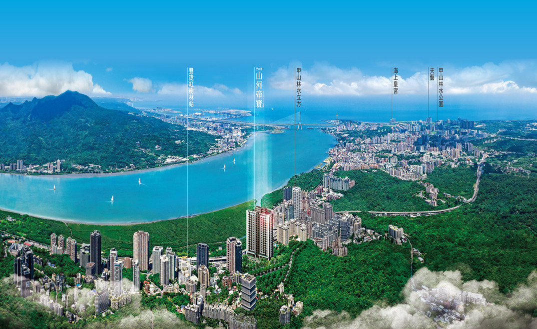 鑽石紅線上的紅樹林站周遭環境清幽,其中新建案「山河帝寶」,最受矚目,房產專家表示淡江大橋預計2025年通車,淡北快速道路最快今年底動工, 紅樹林是最受惠的區域。」